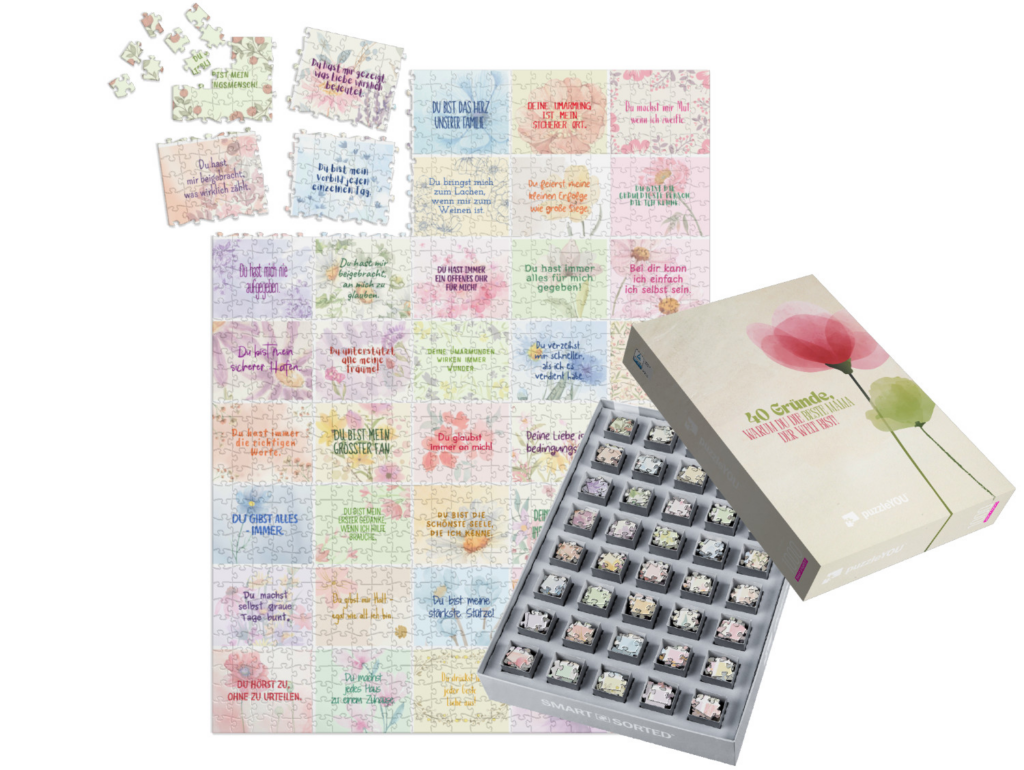 Das Besondere daran ist die Mischung aus Emotion und gemeinsamer Zeit: Während das Bild langsam entsteht, kommen Gespräche, Erinnerungen und oft auch viel Lachen ganz von selbst. Am Ende entsteht nicht nur ein fertiges Puzzle, sondern ein liebevoller Moment, der verbindet. So wird aus einem einfachen Geschenk eine echte Herzensbotschaft: Wir gehören zusammen.