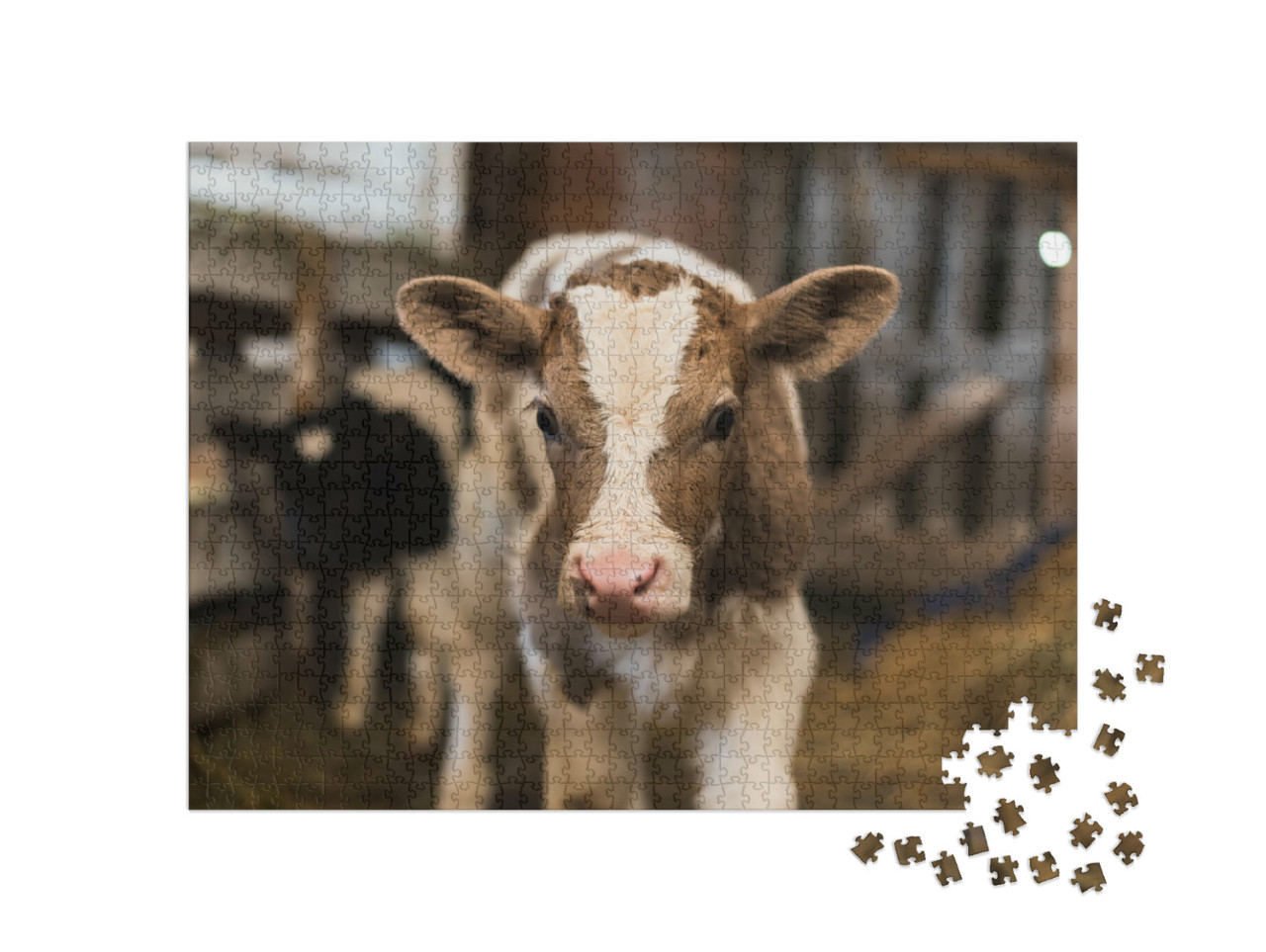 Puzzle „Niedliches Kalb im gemütlichen Stall“