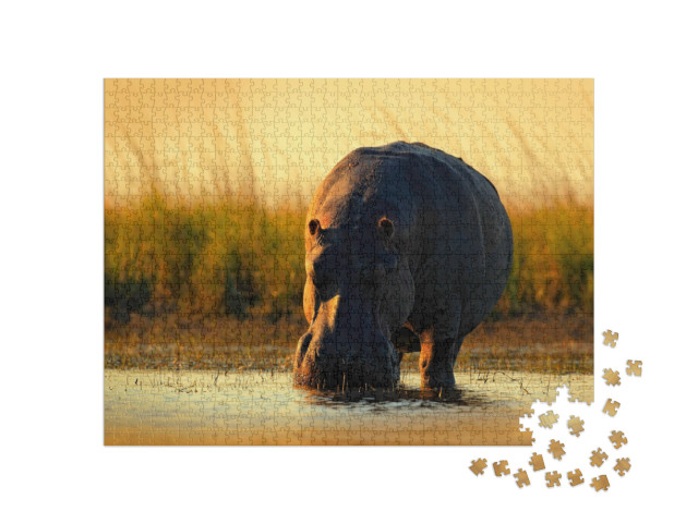 Puzzle „Afrikanisches Flusspferd im Abendlicht, Botswana, Afrika“