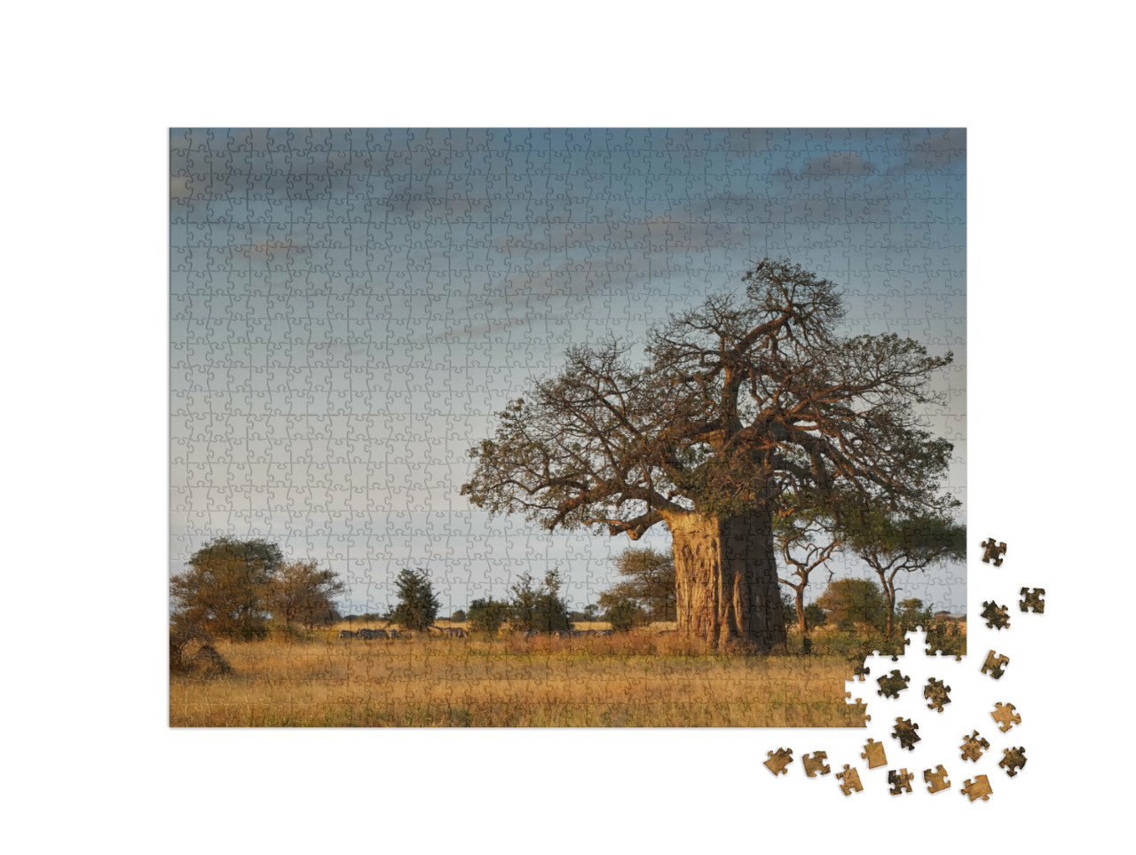 Puzzle „Afrikanische Landschaft mit einem großen Baobab-Baum“