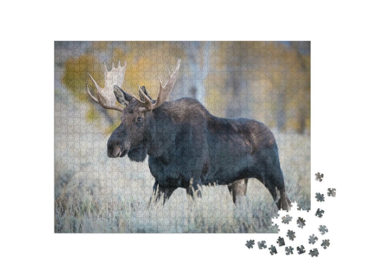 Puzzle „Elch steht im trockenen Gras, Yellowstone, USA“