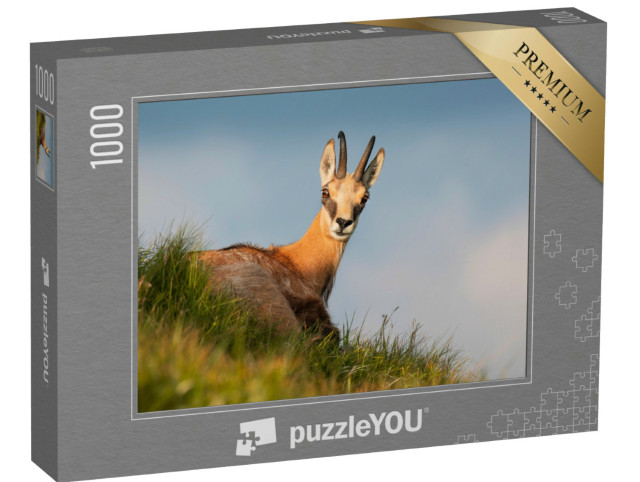 Puzzle „Gämse auf einer Bergwiese im Abendlicht“