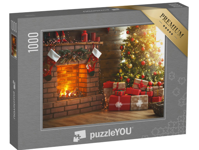 Puzzle „Weihnachtszimmer, Tannenbaum, Kamin und Geschenke“