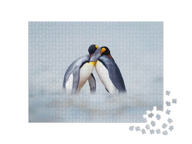 Puzzle „Eng umschlungene Königspinguine trotzen der Kälte“