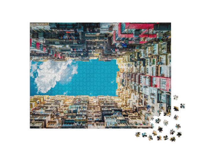 Puzzle „Architektur aus spannender Perspektive von unten gegen den Himmel“