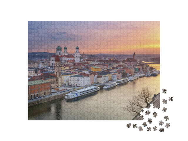 Puzzle „Passauer Skyline bei Sonnenuntergang, Bayern, Deutschland“