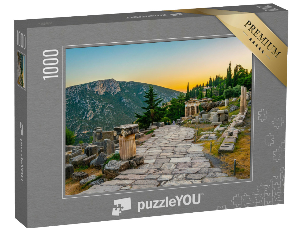 Puzzle „Sonnenuntergang über Delphi, antike Stätte, Griechenland“