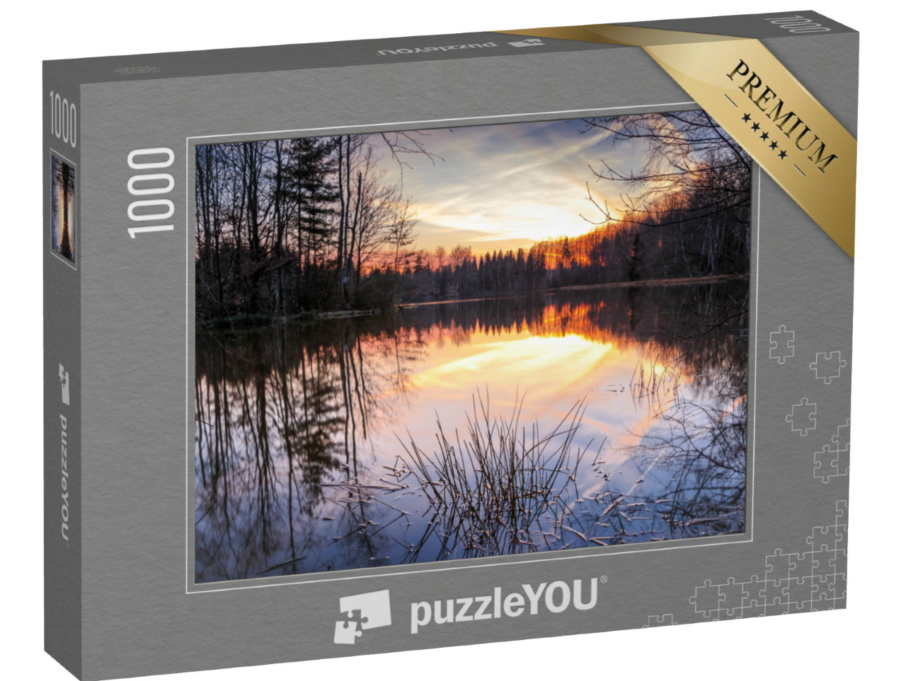 Puzzle „Sonnenuntergang über einem Bergsee im Erzgebirge, Schneeberg“