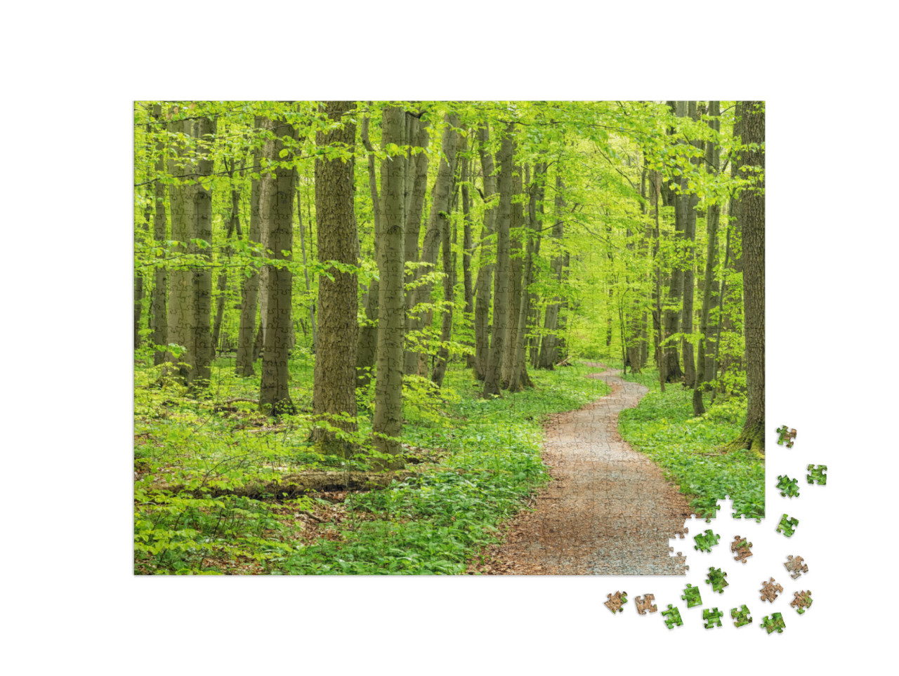 Puzzle „Wanderweg durch den Buchenwald im Frühling, Nationalpark Hainich“