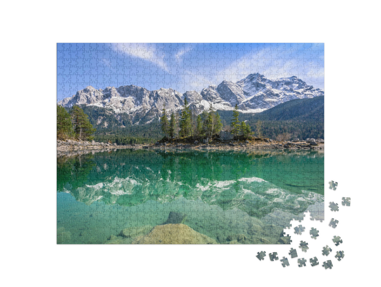 Puzzle „Zugspitze spiegelt sich im Eibsse, Garmisch-Partenkirchen, Bayern, Deutschland“