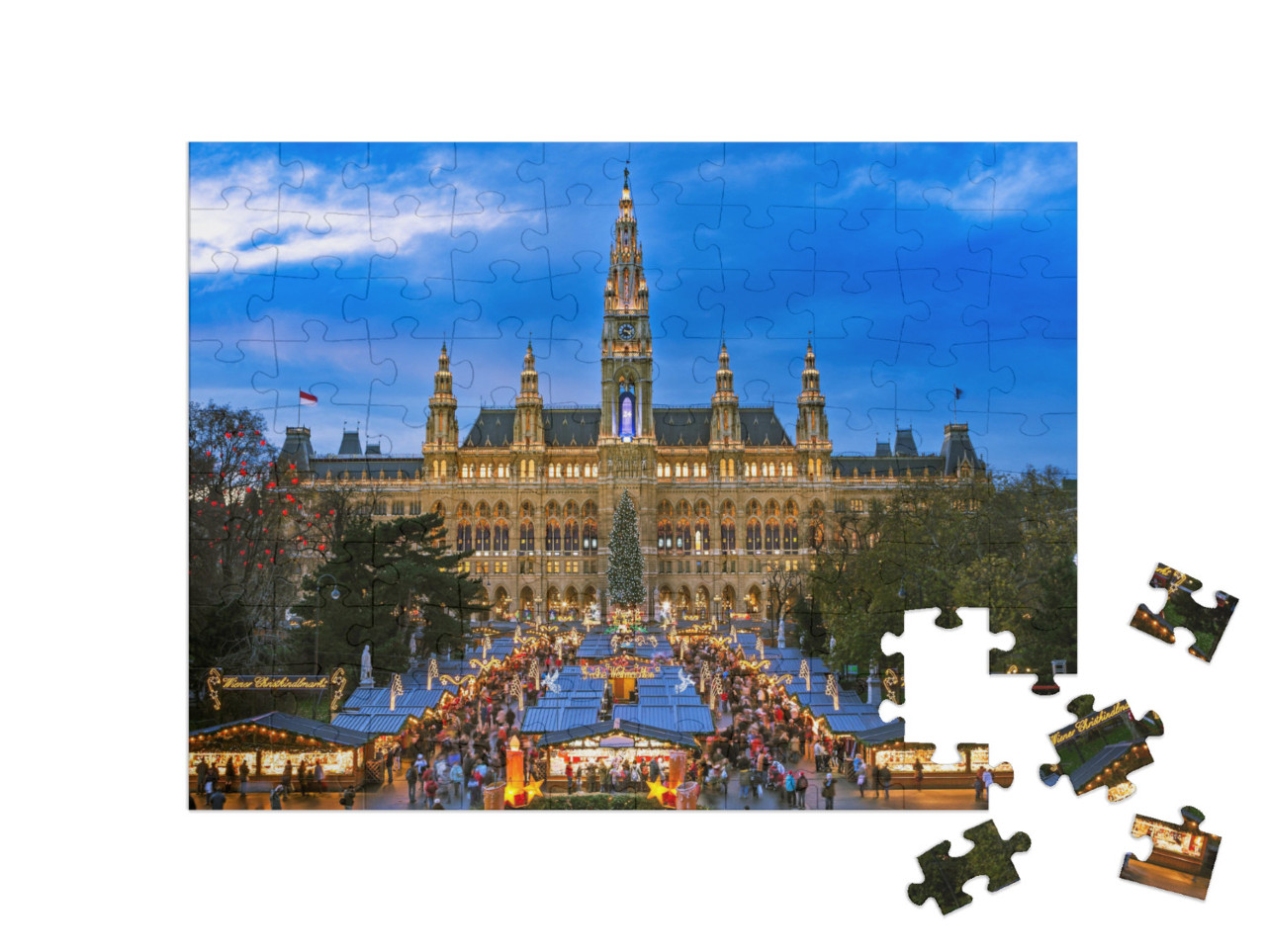 Puzzle 100 Teile „Weihnachtsmarkt in Wien, winterliches Motiv“